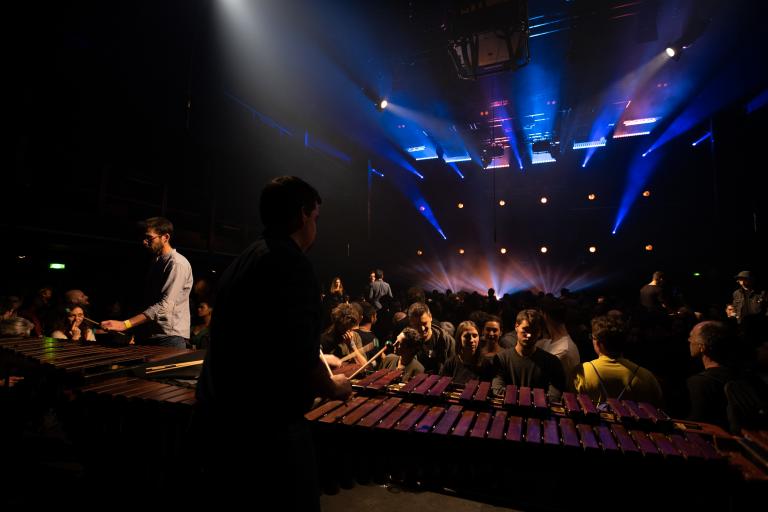 Leur version reste fidèle à l’originale mais la spatialisation du son ouvre de nouvelles perceptions sonores. Le public se place en effet, au choix, autour des artistes sur le plateau ou dans la salle. Une aventure sonore étourdissante.